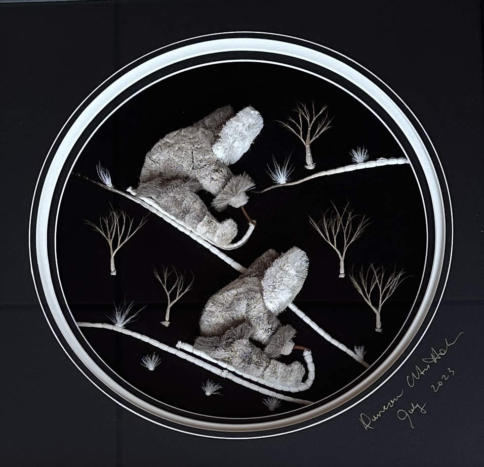 This prize is a Framed Moose Hair & Caribou Hair Tufting by Duncan Chisholm