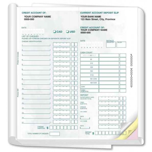 - Preprinted account information on carbonless sets makes depositing and recordkeeping easy.